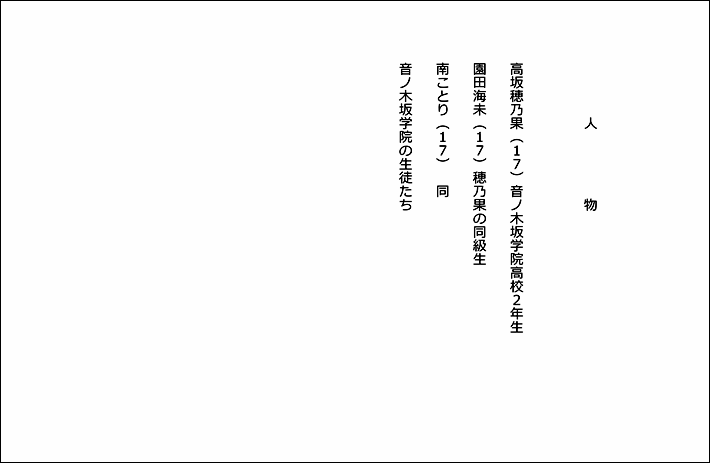 手書き同様1枚目に表紙、2枚目に人物表、3枚目以降本文、最後に裏表紙となります。