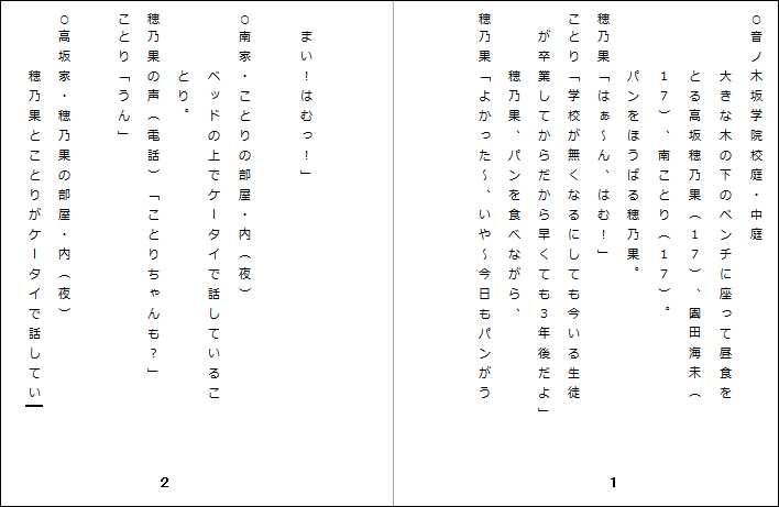 PC出力用紙1枚で シナリオ手書き原稿用紙2枚分を書きます。