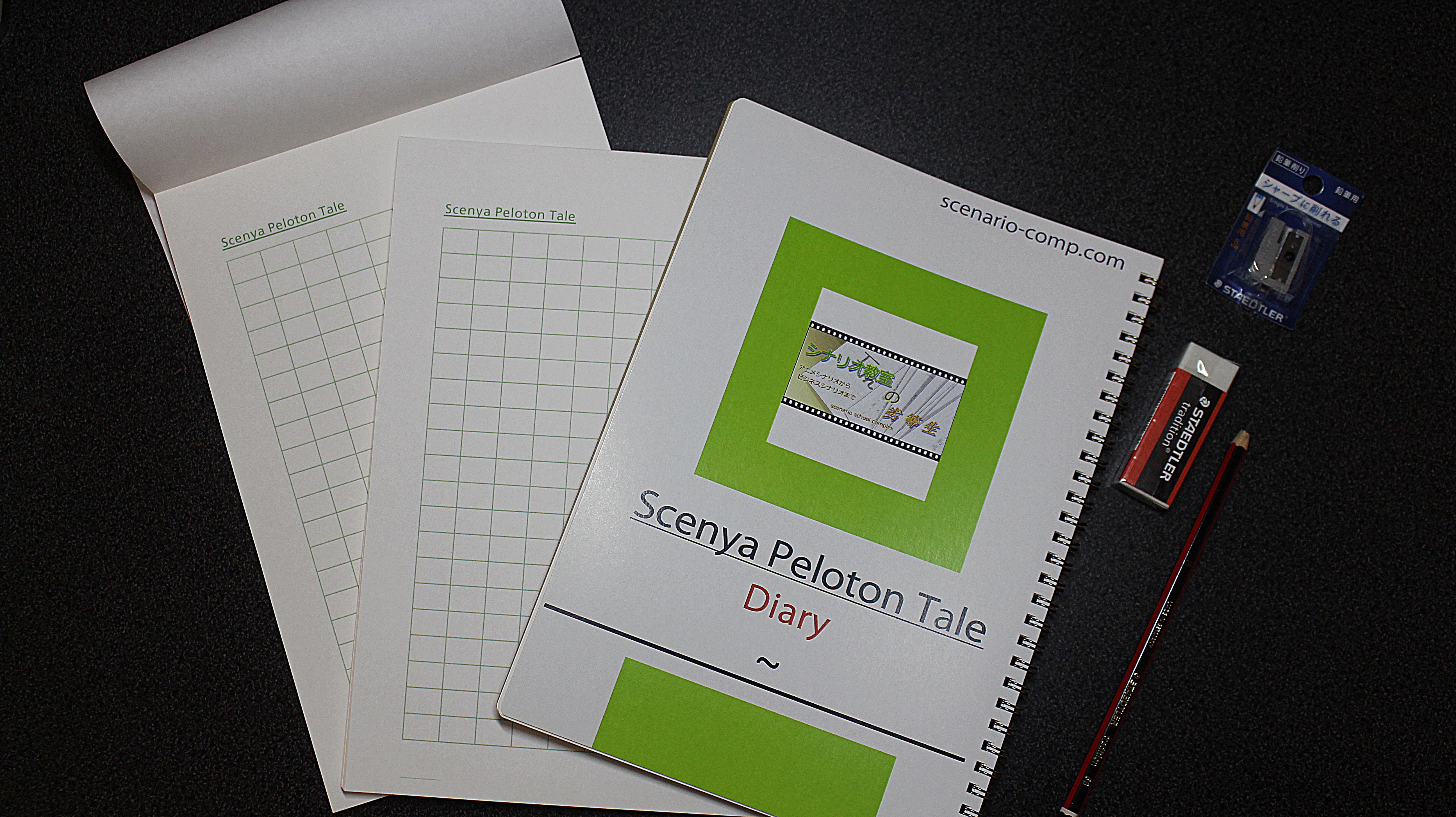 シナリオ専用原稿用紙×2、特製日記型ネタ帳、ステッドラー6B鉛筆、消しゴム、鉛筆削り